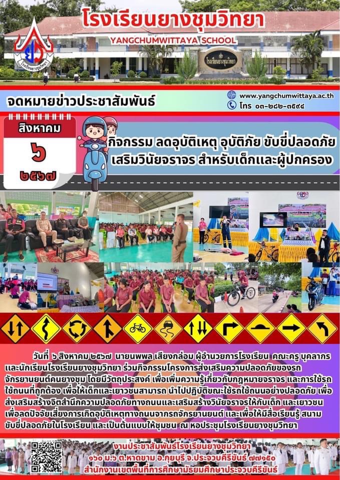 และนักเรียนโรงเรียนยางชุมวิทยา ร่วมกิจกรรมโครงการส่งเสริมความปลอดภัยของรถ