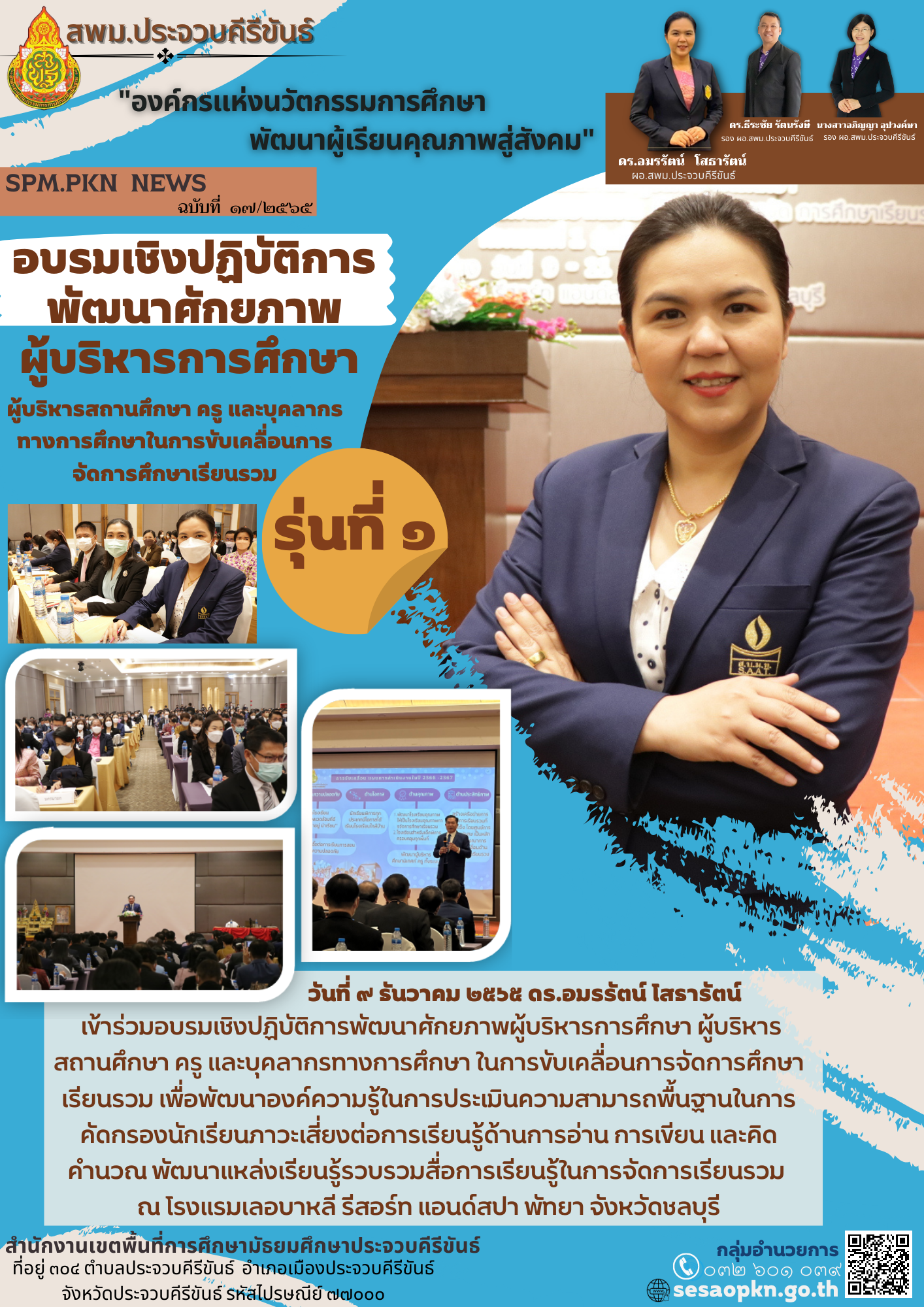 วันที่ 9 ธันวาคม 2565 ดร.อมรรัตน์ โสรารัตน์ เข้าร่วมอบรมเชิงปฏิบัติการพัฒนาศักยภาพผู้บริหารการศึกษา ผู้บริหารสถานศึกษา ครู และบุคลากรทางการศึกษา ในการขับเคลื่อนการจัดการศึกษาเรียนรวม เพื่อพัฒนาองค์ความรู้ในการประมินความสามารถพื้นฐานในการคัดกรองนักเรียนภาวะเสี่ยงต่อการเรียนรู้ด้านการอ่าน การเขียน และคิดคำนวณ พัฒนาแหล่งเรียนรู้รวบรวมสื่อการเรียนรู้ในการจัดการเรียนรวม ณ โรงแรมเลอบาหลี รีสอร์ท แอนด์สปา พัทยา จังหวัดชลบุรี